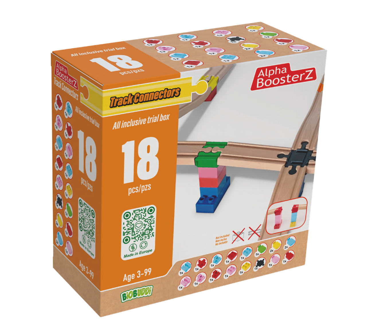 ALL INCLUSIVE TRIAL SET sættet består af Track Connectors, der kan bruges sammen med trætogskinner.