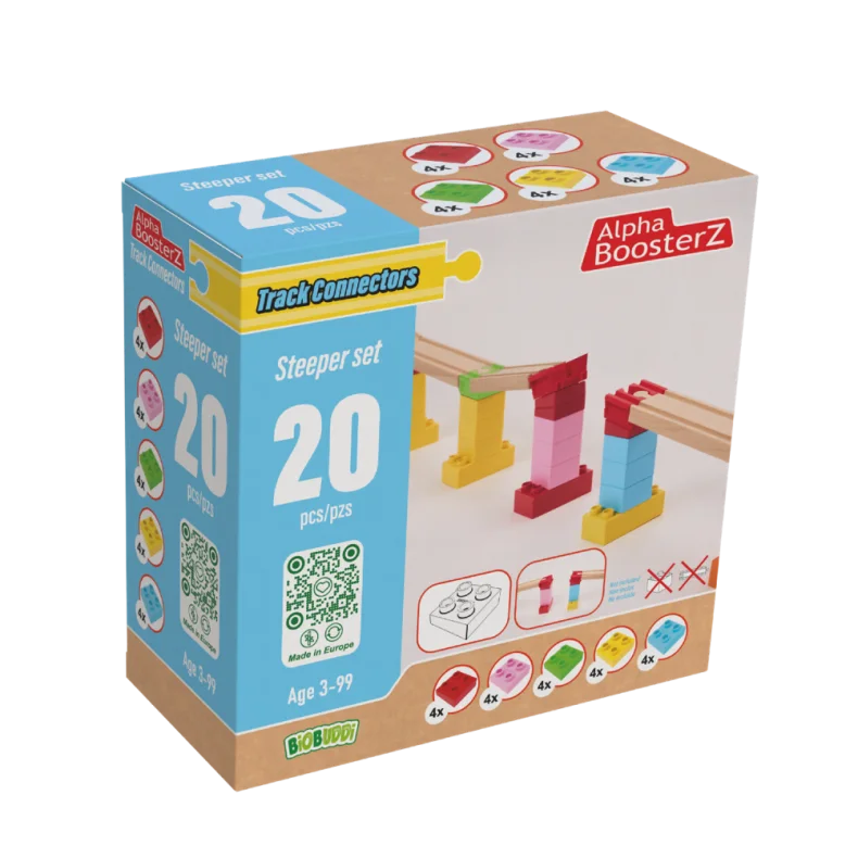 Sættet “SIMPLER” indeholder 10 stk. Simpler Track Connectors. Det giver dig mulighed for at prøve og bygge højere togbaner. Sættets indhold er kompatibel med forskellige lignende byggeklodser og Track Connectors kan anvendes sammen med trætogskinner fra alle mulige mærker og producenter af trætogbaner, herunder fra Brio, IKEA, HAPE, BigJigs, Lidl osv.