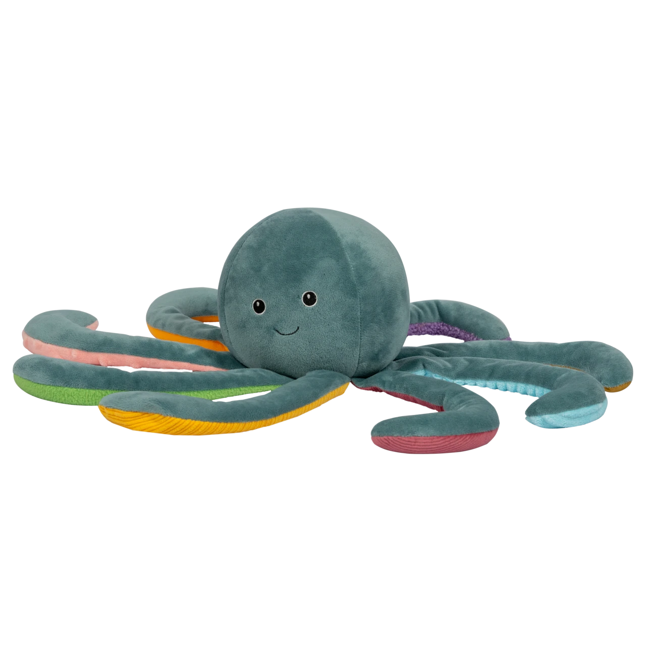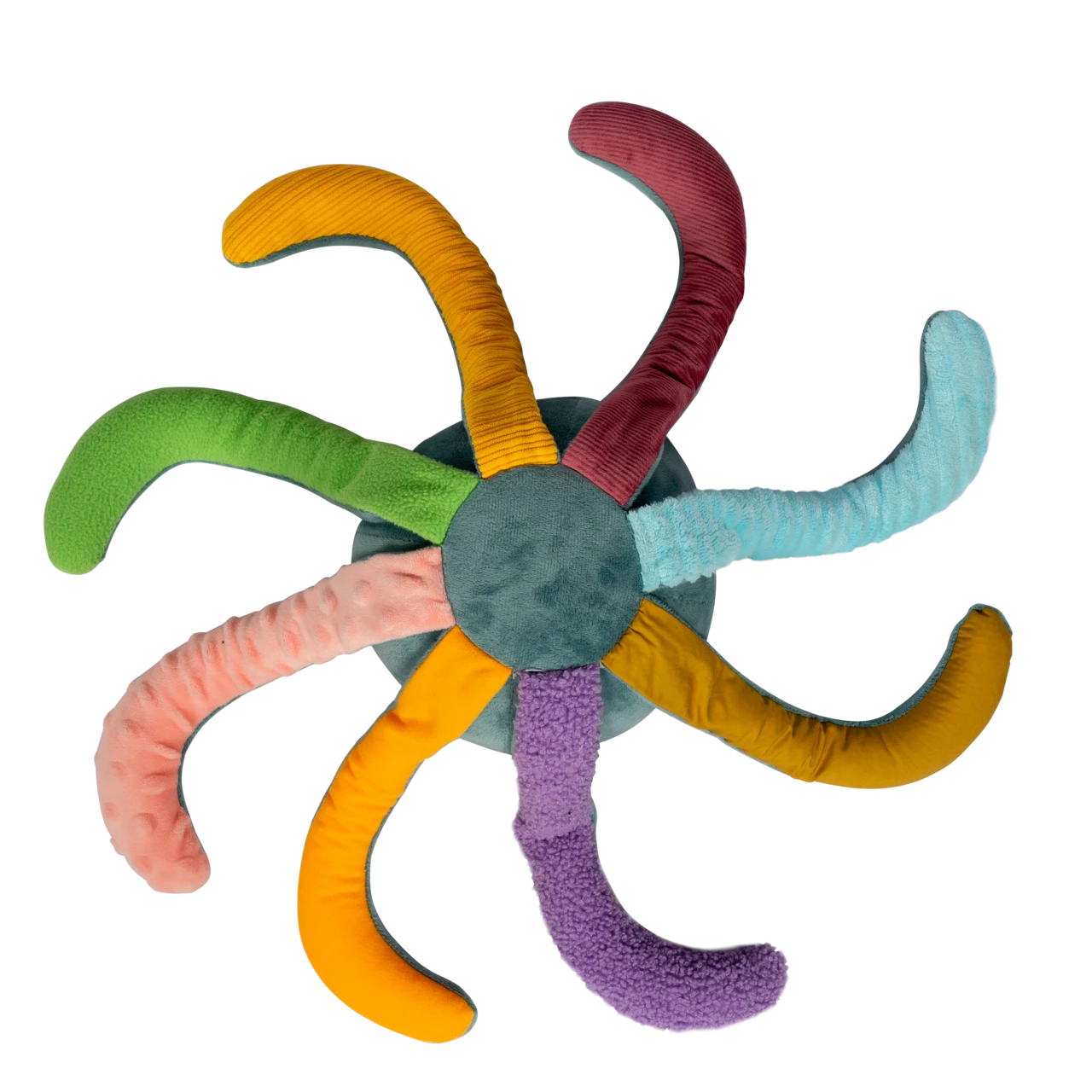 Med sine livlige, taktile arme tilbyder denne bedårende vægtede blæksprutte en unik sensorisk oplevelse for små børn. Hver arm har en forskellig tekstur og farve, der inviterer børn til at udforske og nyde forskellige typer sensorisk stimulering, hvilket gør den både engagerende og beroligende.