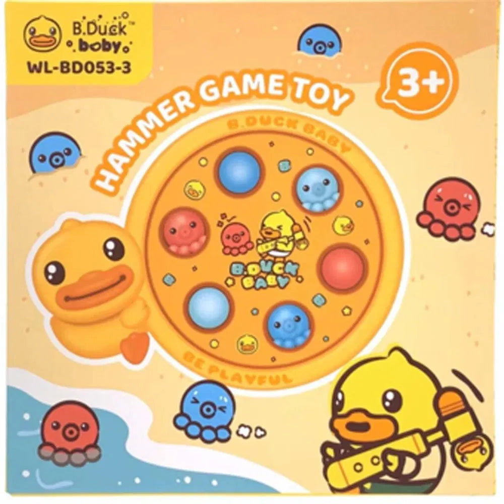 B. Duck Hammerspil er et spil til småbørn, hvor de skal slå til muldvarpene. Spillet fungerer ved hjælp af vægtstangsprincippet, og muldvarpene hæves automatisk.