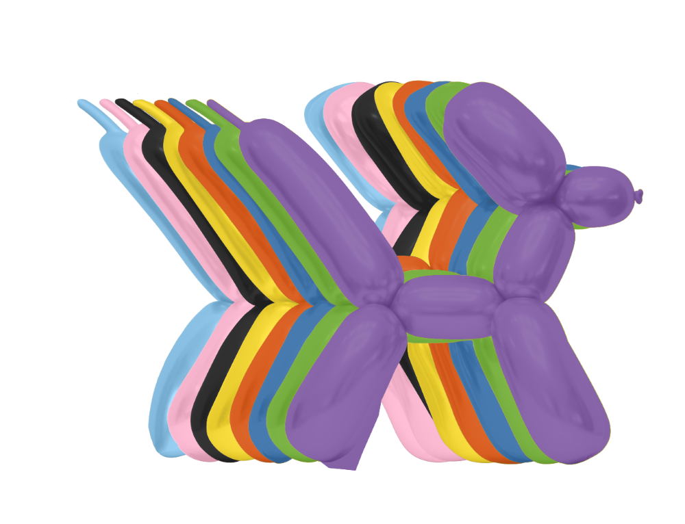 Denne pose indeholder 100 stk Balloner til ballondyr i forskellige farver.
