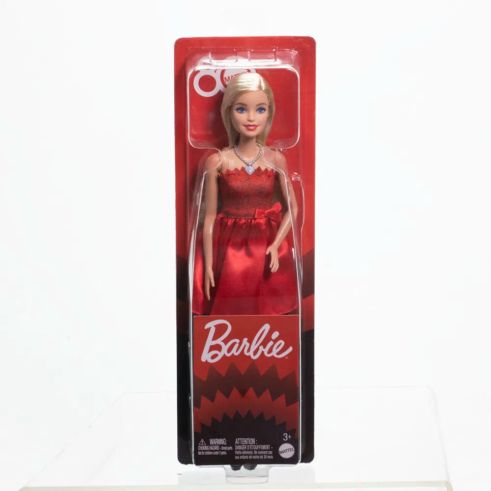 Barbie-brandet markerer Mattels 80-års jubilæum med en samlerdukke i en smuk festkjole! Barbie hylder virksomhedens mangeårige legendariske historie i en rubinrød festkjole med smukke detaljer, såsom en festlig sløjfe og en overdel med et design inspireret af det ikoniske Mattel logo. Sølvfarvede hælsandaler og en matchende halskæde fuldender hendes look. Barbie-fans og børn fra 3 år og opefter vil elske at fejre denne særlige begivenhed sammen med denne samlerdukke. Dukken kan ikke stå selv. Farver og dekorationer kan variere. Fra 3 år.
