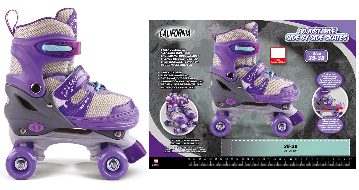 California Justerbare Side-by-Side Rulleskøjter – Lilla (Str. 35–38)