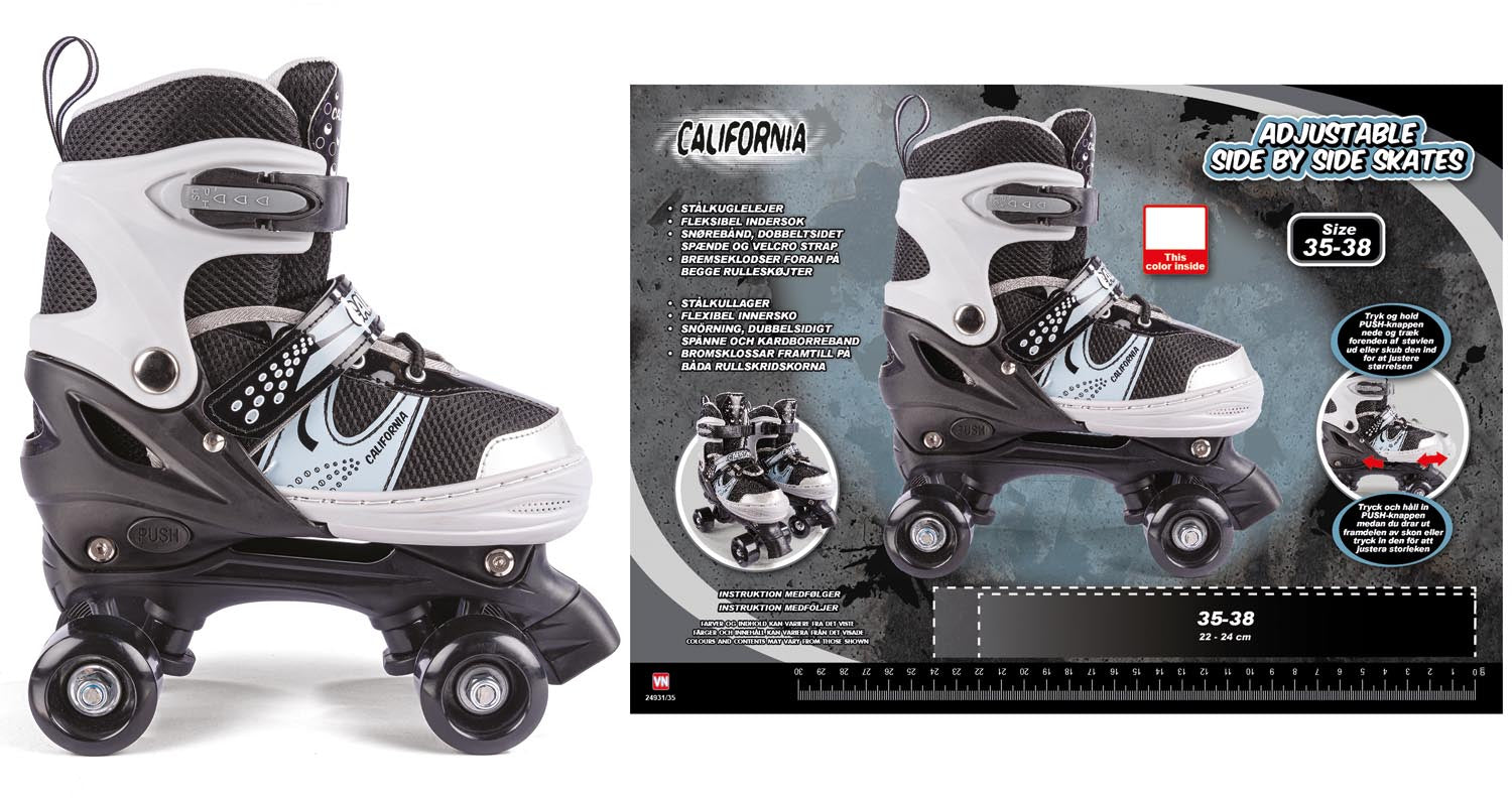 California Justerbare Side-by-Side Rulleskøjter – Sort/Grå (Str. 35–38)