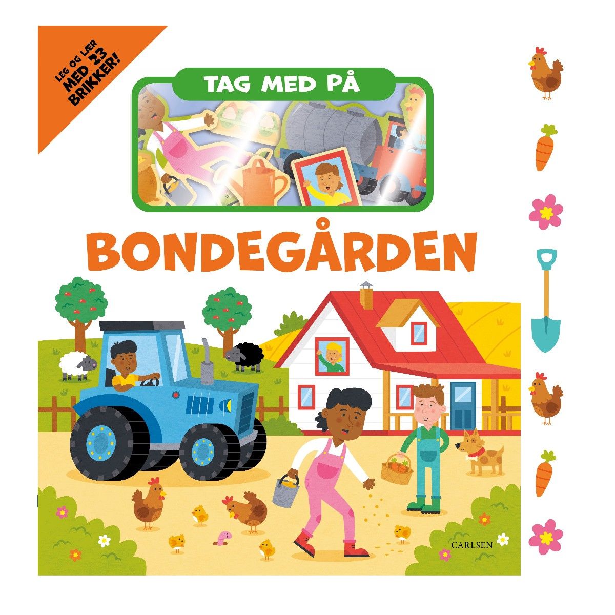 Tag med på bondegården, og leg med de mange sjove brikker!