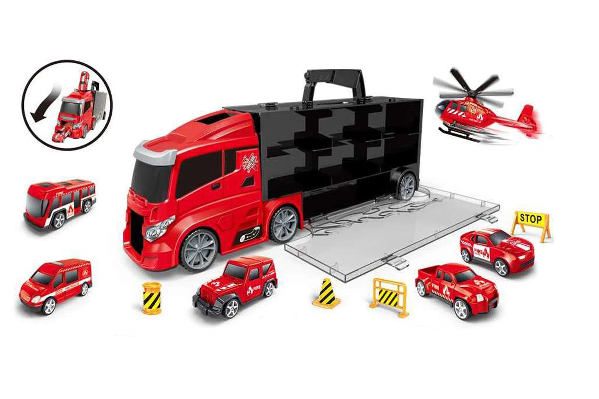 Giv dit barn en spændende og actionfyldt legeoplevelse med vores fantastiske legetøjslastbil, der kommer med 5 små brandkøretøjer og en redningshelikopter! Dette sæt er perfekt til alle små helte, der drømmer om at bekæmpe brande og redde liv!