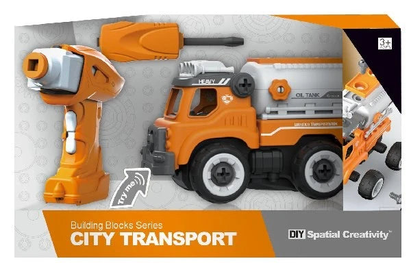 Modellen kan skilles ad og samles med det medfølgende værktøj. Motoren der sidder i den medfølgende skruemaskine, kan efter samling af modellen, monteres i køretøjet og så har du en fjernstyret model, der kan buges af mindre børn.