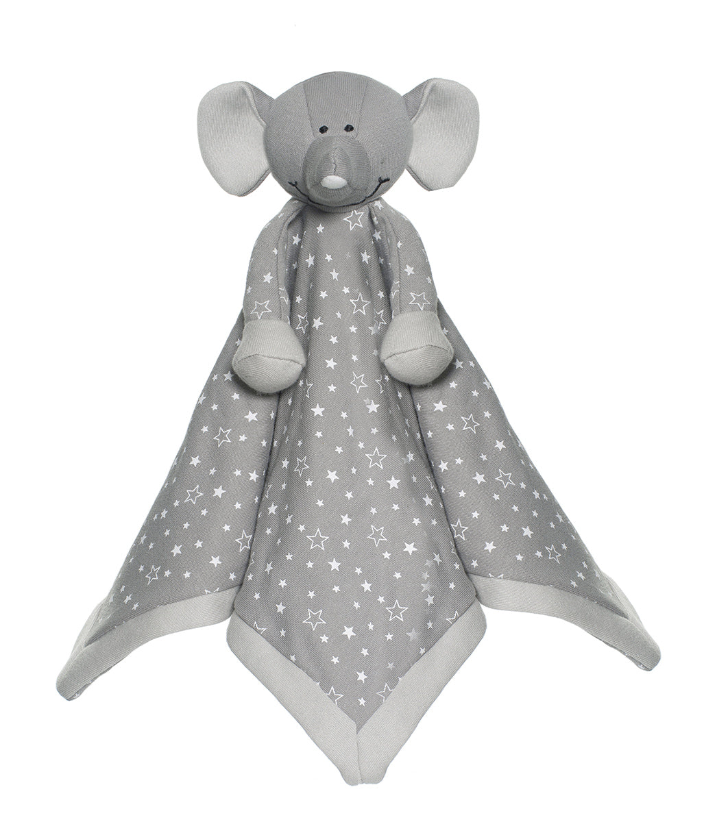 Denne søde nusseklud er lavet af økologisk, miljøvenlig bomuld og er formet som en elefant.