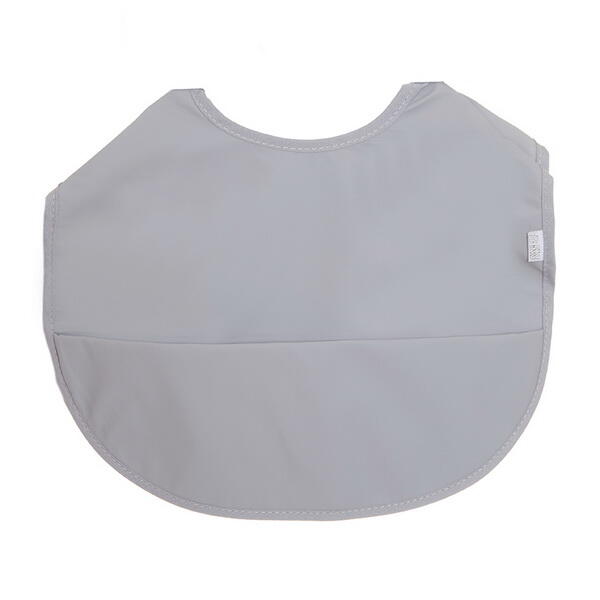 Denne Fresh Kid hagesmæk grå, har lomme til at samle noget af det mad op, barnet spilder.