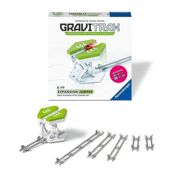 Bevæg dig et niveau op! Jumper løfter din kugle op til et højere niveau og skaber samtidig en gennemgangstunnel. Kombinér Jumper med dit GraviTrax startsæt for en spændende udvidelse af din kuglebane. Kan du få dine kugler til at hoppe? Fra 8 år.