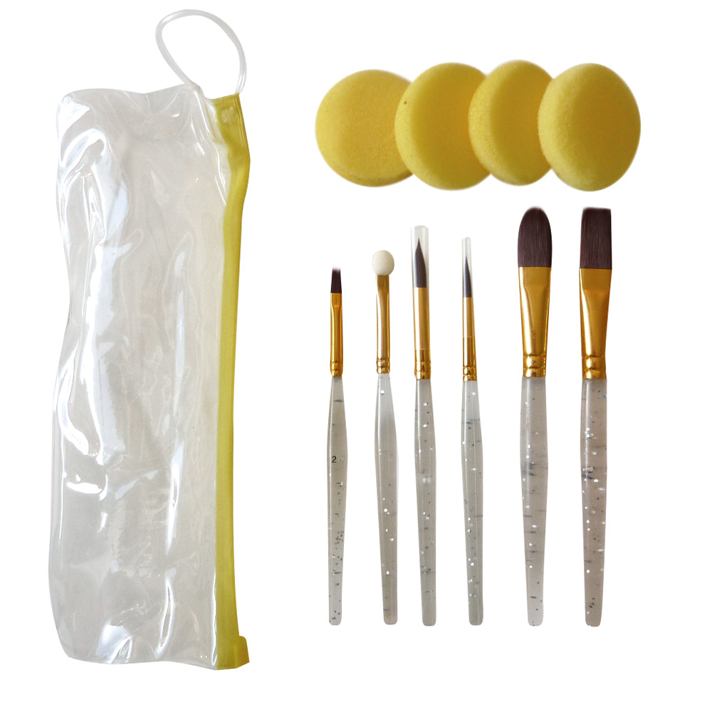 Indeholder 4 svampe, 2 brede pensler, 3 små pensler og en øjenskygge applikator.