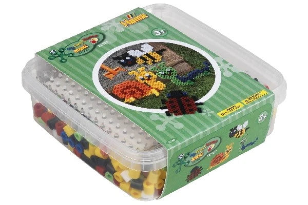 Ca. 600 perler, 1 gennemsigtig stor firkantet stiftplade nr. 8214. 4 perlefødder, motivark, vejledning og strygepapir.