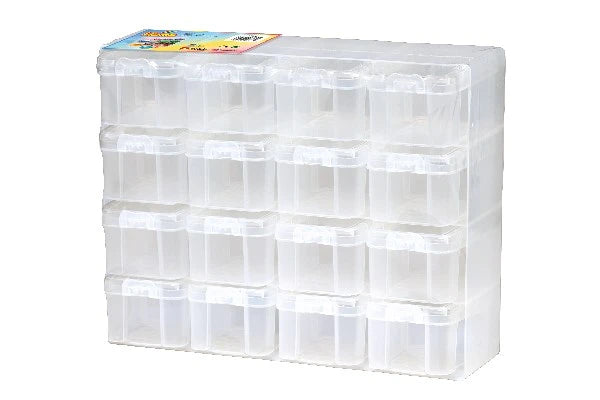Opbevarings æske med 16 rum. Boksen måler 22x28x8,5 cm.