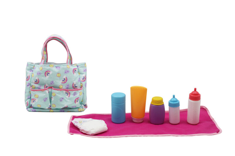 Perfekt legetøjstilbehør til de smås rollelege. Lad deres fantasi få vinger, mens de tager sig af deres dukker derhjemme eller på farten. Pusletasken indeholder ble, tæppe og flasker. Fra 3 år.