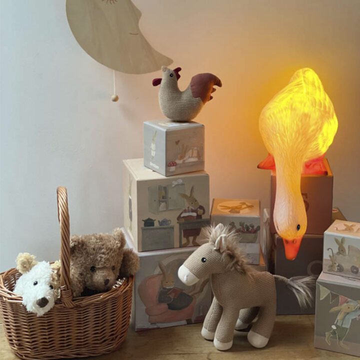 En and der strækker halsen og kigger ned. Rigtig sjov lampe til at sætte på en hylde, skab eller trappe. En natlampe hjælper børnene med at falde i søvn om aftenen og skaber tryghed hvis de vågner om natten. Om lampen er tændt eller ej, så pynter lampen fint på børneværelset.