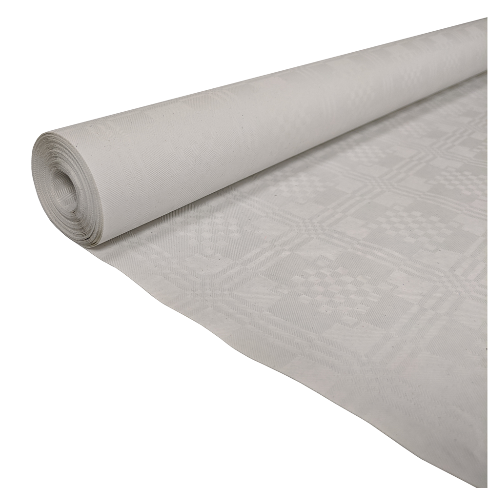Denne hvide papirdug med mønster måler 1,19 x 8 meter