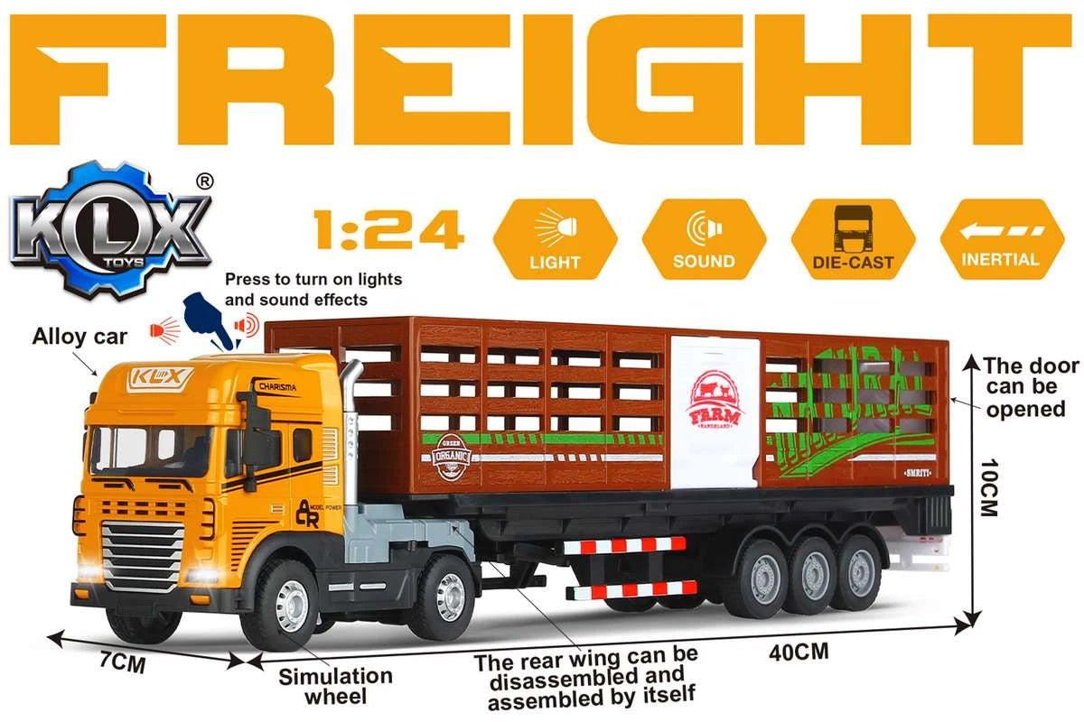 KLX trykstøbt trykstøbt lastbil med dyretrailer, lys og lyd