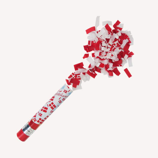 Dette Konfettirør med flag, kan bruges til mange forskellige festligheder som bryllup, student, jubilæer, fødselsdage, nytår m.m.