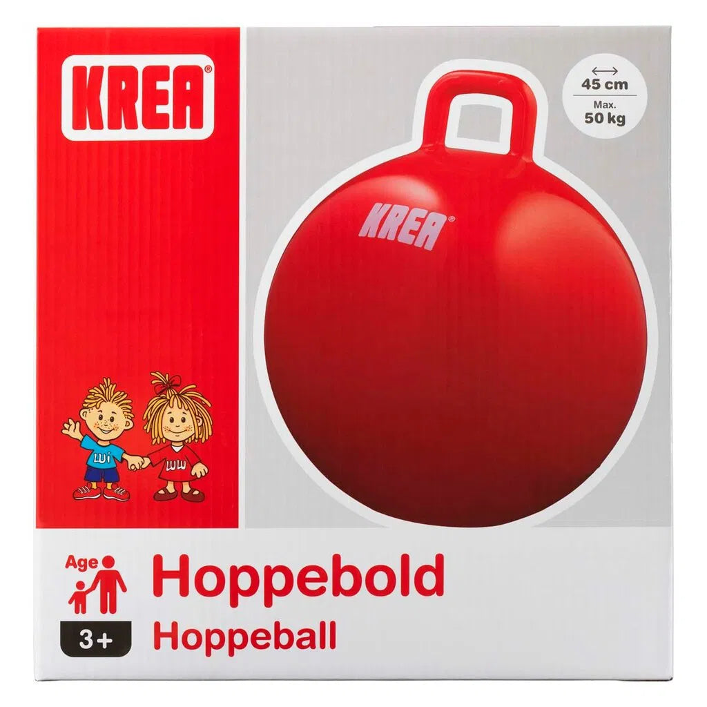 KREA Hoppebold i rød. Der er ikke noget sjovere end at hoppe rundt på en hoppebold. Det er sjovt, det træner muskllerne og motorikken, det styrker balancenm det gi'r god motion, glade smil og røde kinder. Pumpe medfølger. Diameter 45 cm. Fra 3 år.