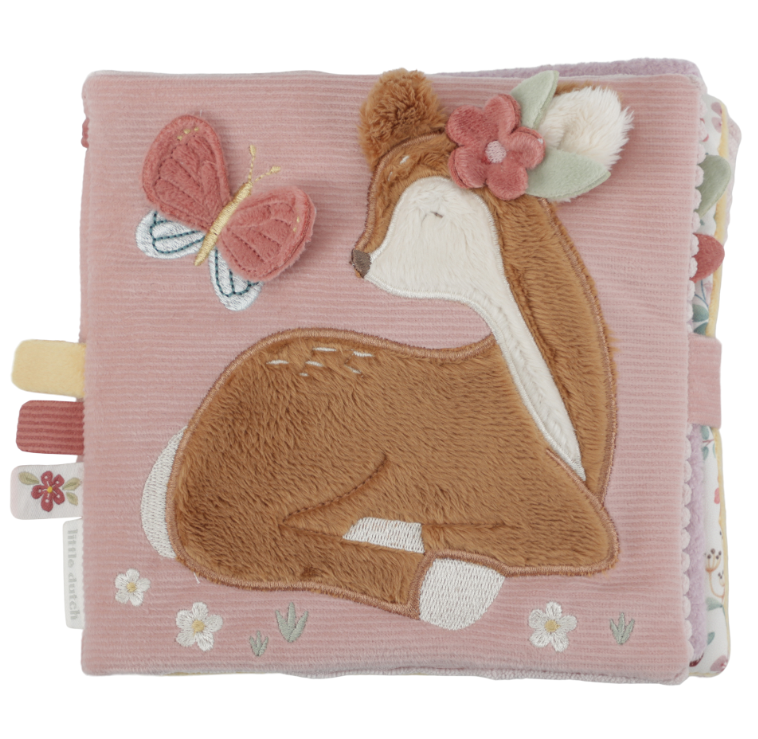 Der er masser af forskellige materialer og aktiviteter at udforske, f.eks. et spejl, en rangle og knitrende legetøj. Det bløde hæfte har også forskellige etiketter, man kan røre ved. Det vil ikke kun stimulere sanserne, men også hjælpe med at udvikle hånd-øje-koordination.