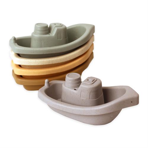 Miljøvenlige badebåde i hvedestrå. Sæt med 5 både i smukke pastel farver. Lavet af 100% nedbrydelig bioplastik, som kræver mindre CO2 at producere. Perfekt til børn fra 6 måneder.