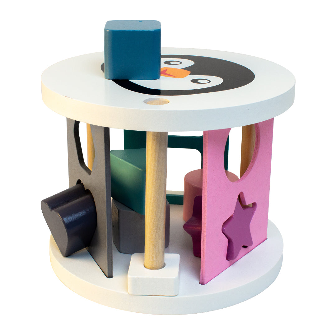 Smuk og dekorativ putteboks i FSC certificeret træ. Der er 6 forskellige figurer med matchende huller, som aktiverer barnet og stimulerer både den logiske tænkning samt finmotorikken.