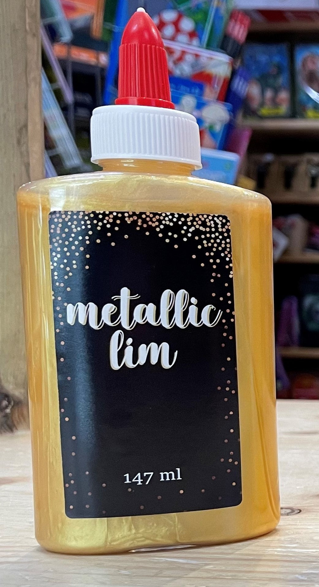 Metallic Glue Guld lim kan anvendelse sammen med magiske væske som gør det sikkert for forældre og børn at lave sin egen slim. Limen er desuden god til anvendelse på papir, stof, kunsthåndværksmaterialer osv.