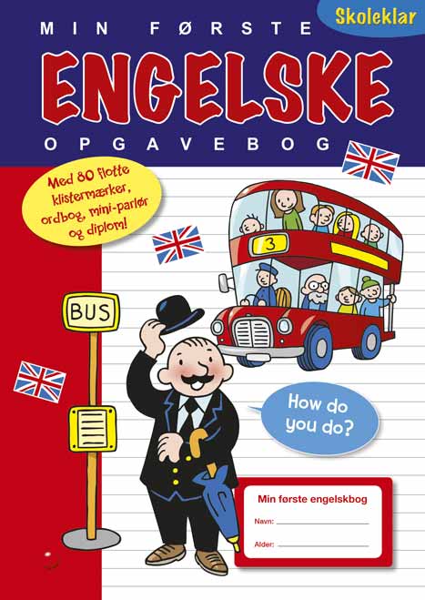At lære et nyt sprog er både sjovt og spændende – især når det sker med leg og opgaver! I denne bog lærer du en masse nye engelske ord om dyr, farver, kroppen, klasseværelset og meget mere. Der er masser af sjove opgaver, klistermærker og engelske sanglege, som alle er med til at udvide dit engelske ordforråd. Bagest i bogen finder du en ordbog – både dansk-engelsk og engelsk-dansk, og på omslagets indersider finder du et flot diplom og en mini-parlør. Have fun!
