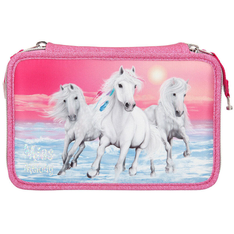 Penalhuset er opdelt i tre rum og indeholder alt, hvad man skal bruge til at tegne og skrive med både i skolen og derhjemme som saks, lineal, lim, viskelæder, blyantspidser, 18 farveblyanter, 18 farvetuscher, 2 blyanter.