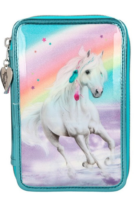 Penalhuset er opdelt i tre rum og indeholder alt, hvad man skal bruge til at tegne og skrive med både i skolen og derhjemme som saks, lineal, lim, viskelæder, blyantspidser, 18 farveblyanter, 18 farvetuscher, 2 blyanter.