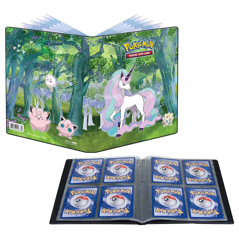 4-Pocket Portfolios til Pokémon har et levende, fuld-art cover af Galarian Rapidash, Jigglypuff, Clefairy, Swirlix og Cutiefly. Hver portefølje gemmer og beskytter op til 40 kort i standardstørrelse enkeltindlæst og 80 kort indlagt dobbelt på arkivsikre polypropylensider. Der er også sider i midten af porteføljen til at gemme op til 4 overdimensionerede Pokémon-kort.