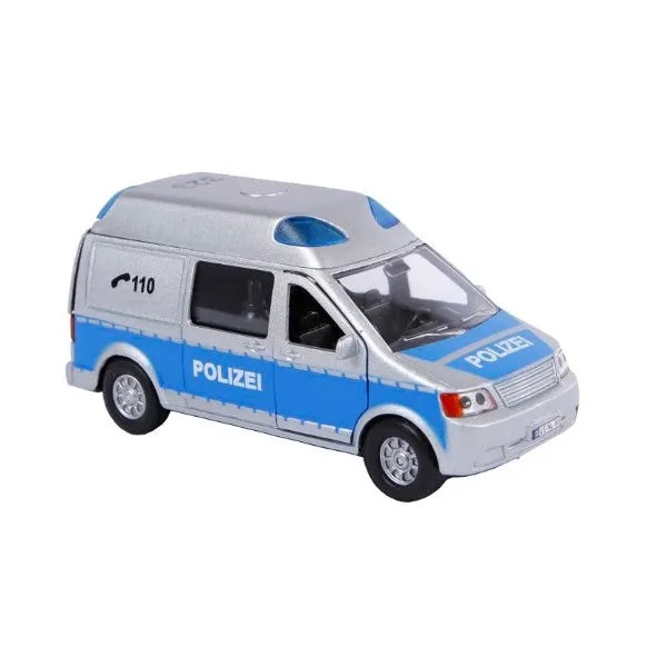 Flot politibil med LYD og LYS. I Die cast metal. Batterier er sat i. Døre kan åbne. Med træk tilbage og kør frem funktion. Der findes ikke noget bedre for drenge at lege med end politibiler.