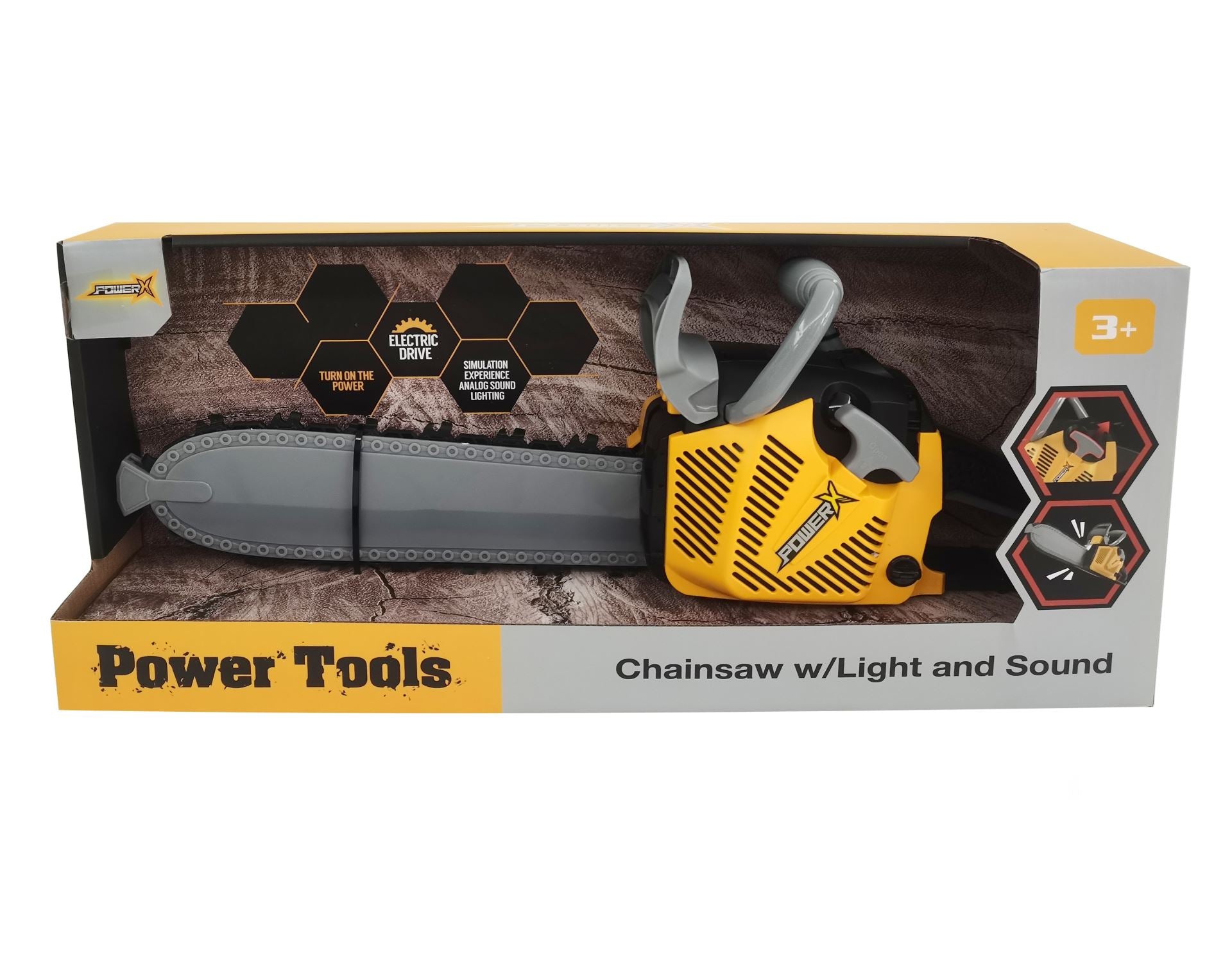 Power X, Kædesav med lys, lyd og bevægelig kæde! Bliv en rigtig skovhugger! Fæld træer, sav i træstammer el. lav brænde til bålet med den seje Power X batteridrevne maskine. 3+ år.