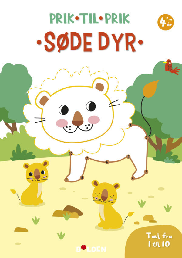 Tegn fra prik til prik ved at følge tallene fra 1 til 10 – og se alle de søde dyr dukke op, ét efter ét. Husk at holde øje med farverne! Tegn derefter over de stiplede linjer og farvelæg de flotte billeder!