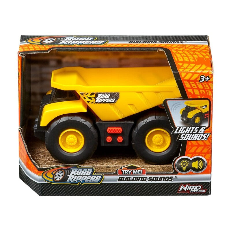 Saml alle køretøjerne, og skab din egen byggeplads! Køretøjerne har lys og lyde og håndaktiverede funktioner, som får dig i gang med grave-, aflæsnings- og ladearbejdet. Vælg mellem 12 cm lastbil med tippelad, bulldozer, frontlæsser og gravko. Kommer med 3 x LR44 batterier. Fra 3 år.