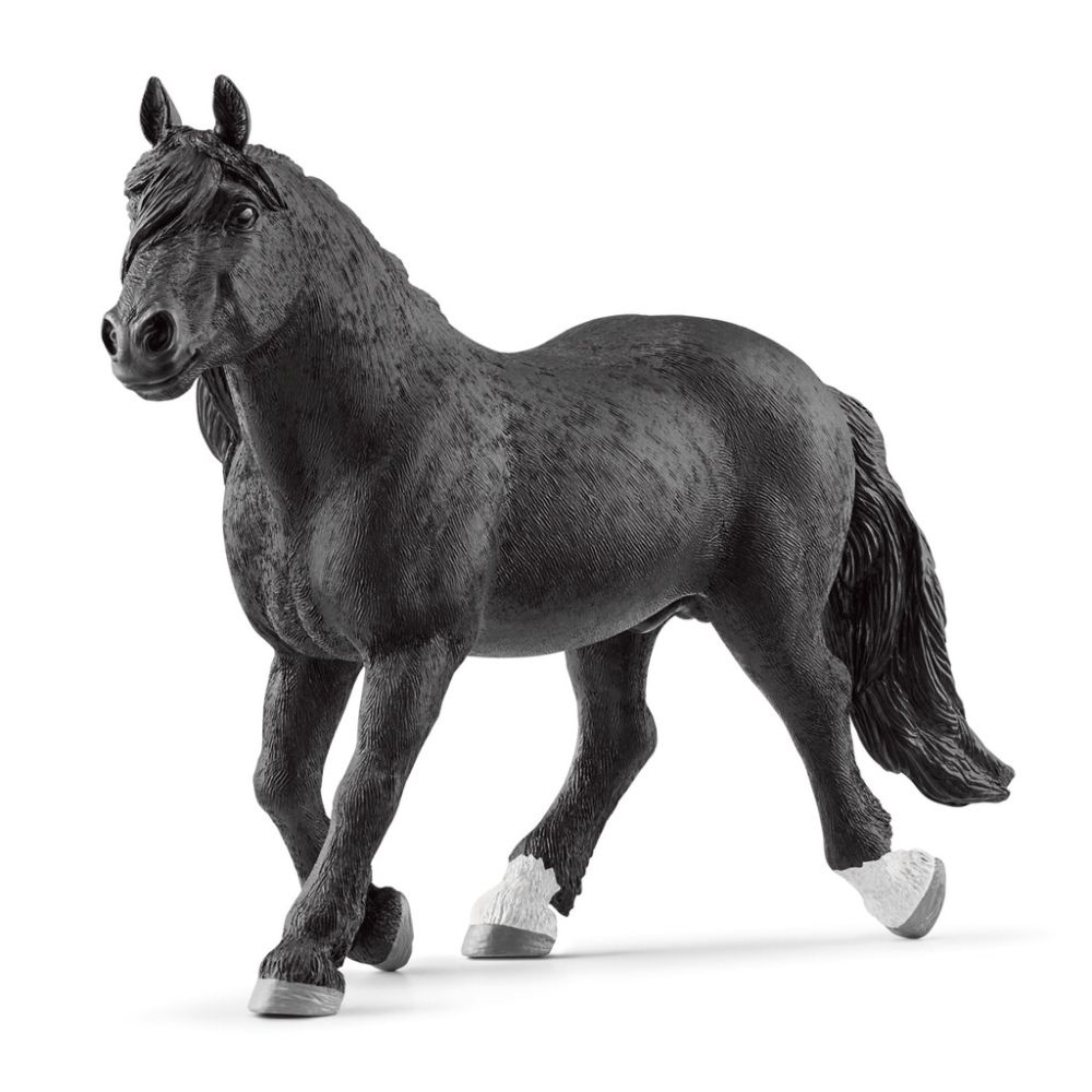 Med hvide sokker på bagbenene ser den ellers kulsorte Noriker-hingst rigtig rar ud. Det er ikke så sært: Disse heste er kendt for deres venlige og rolige væsen. Har han allerede vundet dit hjerte? Norikeren står fast og solidt og er ikke let at forskrække, når han er i sin fold. Og det er godt, for han må ikke blive nervøs, når han traver ad de smalle bjergstier i sit hjemland! Fra 3 år.