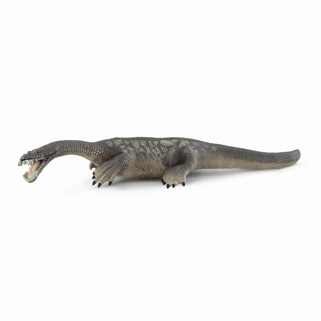 Nothosaurus fra schleich® DINOSAURS bliver kaldt for urtids-sæl af de andre dyr i legetøjskisten. Med sine brede, vifteformede ben var denne dinosaur god til at dykke ned i dybden, men den kunne også glide elegant hen over klitterne på landjorden. Dens lange og tynde hals er perfekt til at lede efter fisk blandt havkorallerne og til at rode efter et matchende par sokker i din strømpeskuffe. Sokkerne giver han så videre til dig, men fiskene æder den selv – helst både til morgen, middag og aften. Den er i øvrigt en sand feinschmecker-dino. Den panerer og steger selv sine fisk. Den har en lækker opskrift, der er 240 millioner år gammel. Vil du prøve? Fra 4 år.