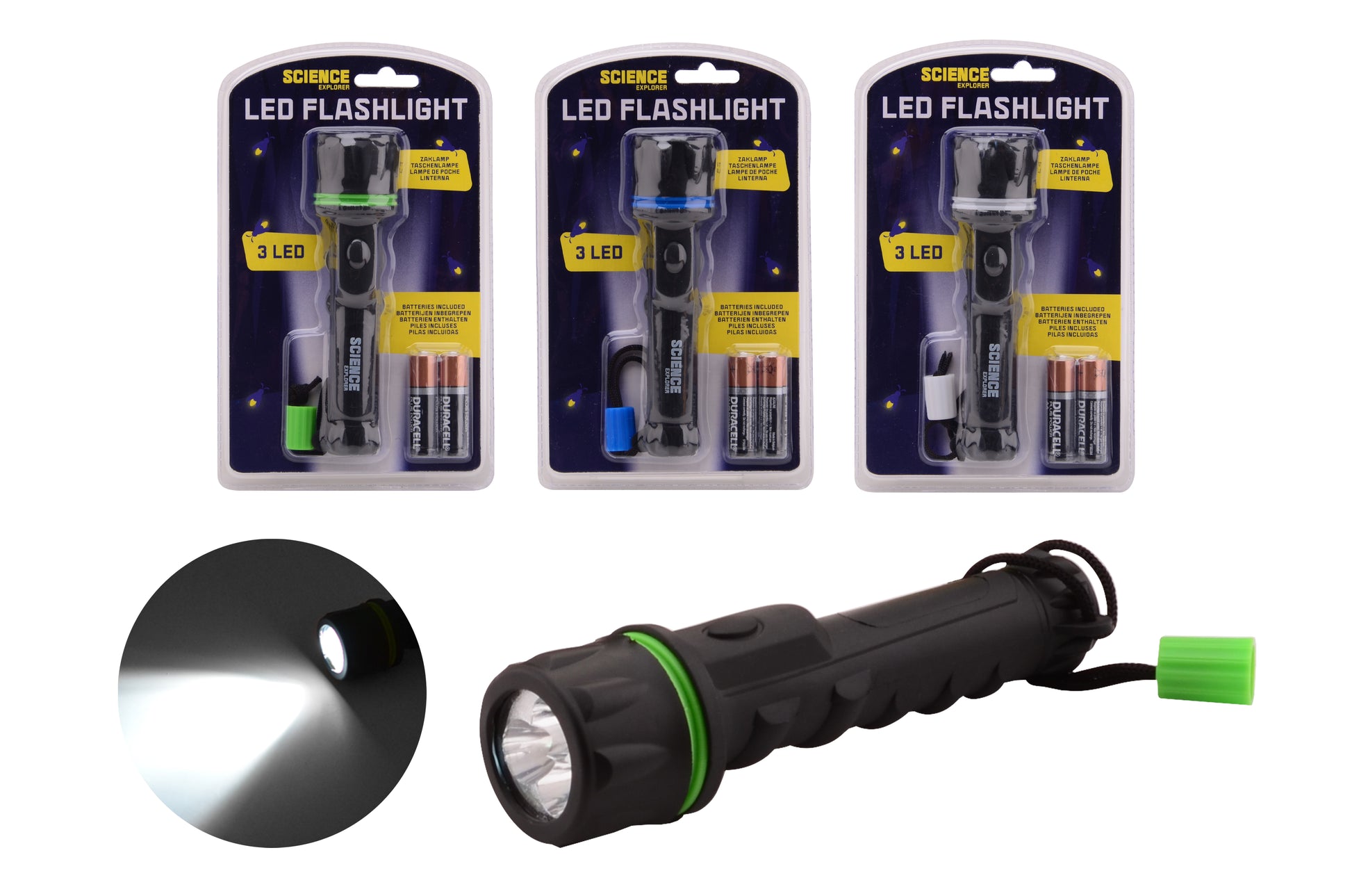 Science Explorer lommelygte på blisterkort med Duracell-batterier