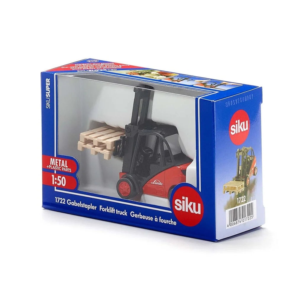 siku 1:50 Gaffeltruck er en detaljeret Linde gaffeltruck med 2 paller og en lang række funktioner: Højdejusterbar gaffel og vipbar løftemekanisme. Perfekt tilføjelse til andre siku-produkter. Materiale: Metal/plast, Målestoksforhold: 1:50, Mål: 9,2 x 3,3 x 7,7 cm. Fra 3 år.