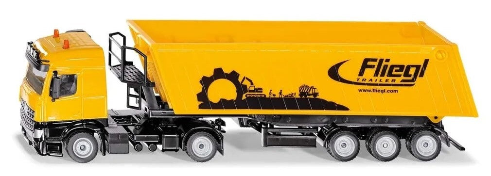 siku 1:50 Lastbil med Tiptrailer er en detaljeret legetøjsmodel af en Mercedes-traktor og Fliegl-dumper. Sættet har en bred vifte af funktioner: aftagelig dumper, traktor er kompatibel med andre trailere i samme målestoksforhold, tiplad, bagklap, der kan åbnes. Den er utrolig holdbar, da det hovedsagelig er en metalkonstruktion, velegnet til flise-, parket- eller tæppegulve. Perfekt tilføjelse til andre siku-produkter. Målestoksforhold: 1:50, Materiale: Metal/plast, Mål: 27,5 x 18,8 x 5,9 cm.