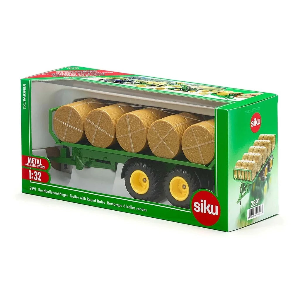 siku 1:32 Trailer til Rundballer er en detaljeret legetøjsmodel med 15 medfølgede halmballer som passer til alle 1:32 siku-køretøjer og -traktorer og er fantastisk til leg. Modellen har en bred vifte af funktioner: Metalstøtte til stabilitet og træk bagerst, der giver mulighed for en ekstra trailer. Fremragende tilføjelse til siku Farmer-traktorer i samme målestoksforhold. Målestoksforhold: 1:32, Materiale: metal/plast, Mål: 27 x 8,6 x 9,4 cm. Fra 3 år.