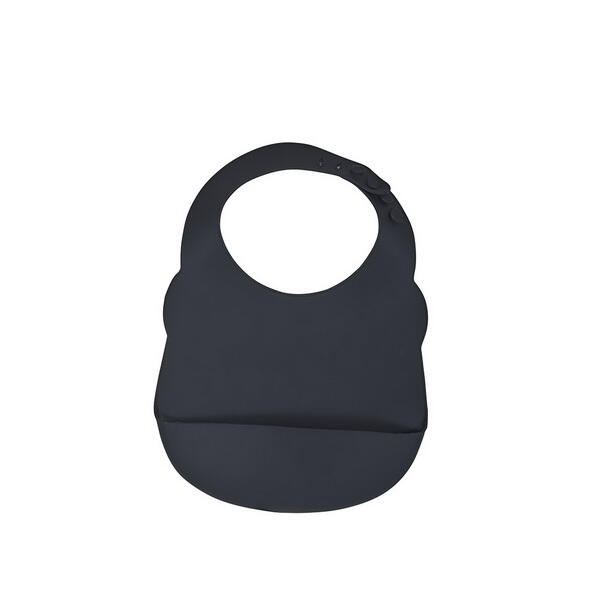 Denne silikone hagesmæk sort med lomme, er blød og behagelig at have på, der er 4 justeringshuller og en lomme til at fange noget af det mad barnet spilder. Nem at rengøre.