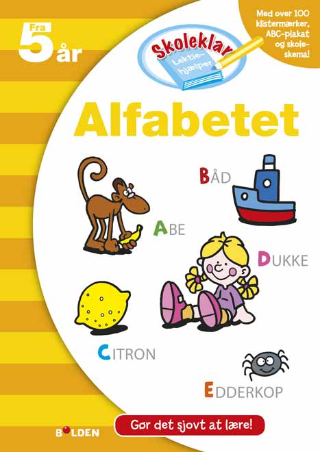 Skoleklar lektiehjælper er en række aktivitetsbøger, hvor hver bog er tilpasset barnets alder og gør det sjovt og inspirerende at øve sig og lege og lære derhjemme! Denne og indeholder opgaver, som træner barnet i at genkende alfabetets bogstaver, hvordan bogstaverne lyder – og hvordan man skriver dem. Opgaverne illustreres med sjove tegninger og der er belønningsklistermærker til hvert opslag.