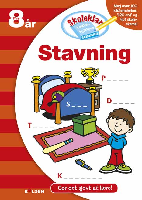 Denne bog indeholder opgaver, som træner barnets stavefærdigheder og lærer det at skelne mellem dobbelt- og enkeltkonsonanter, stumme bogstaver og meget mere. Opgaverne illustreres med sjove tegninger og der er belønningsklistermærker til hvert opslag.