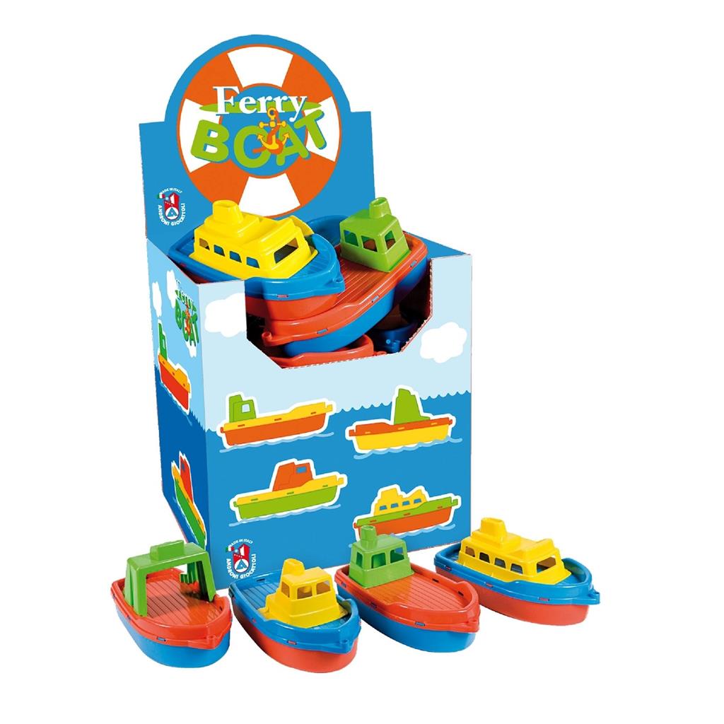 Slæbebåd, lavet af robust kvalitetsplastik. Længde: 30 centimeter. Fire assorterede