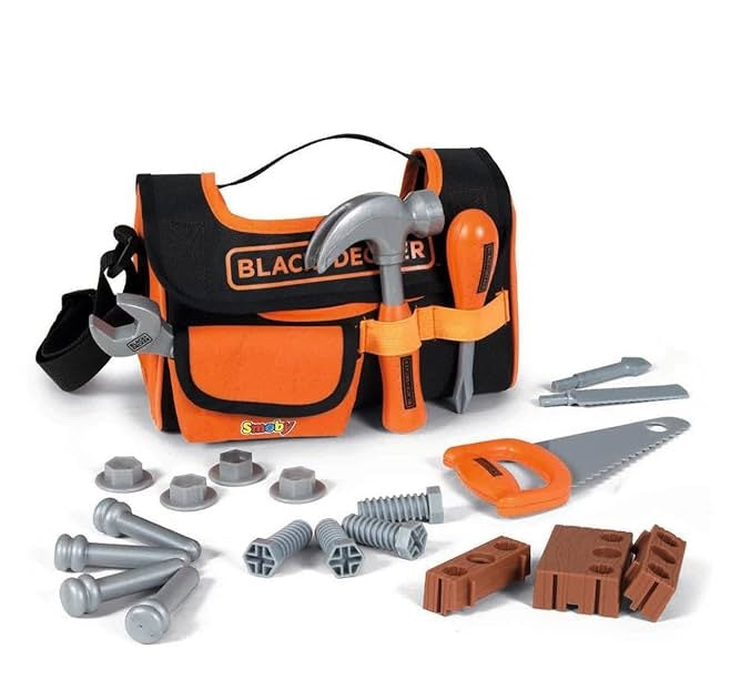 Med Smoby Black & Decker værktøjstaske i stof får børn en sej og praktisk taske fyldt med 4 realistiske værktøjer. Perfekt til små håndværkere, der elsker rolleleg og vil bygge, reparere og lege gør-det-selv på en sjov måde.