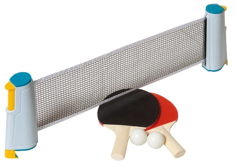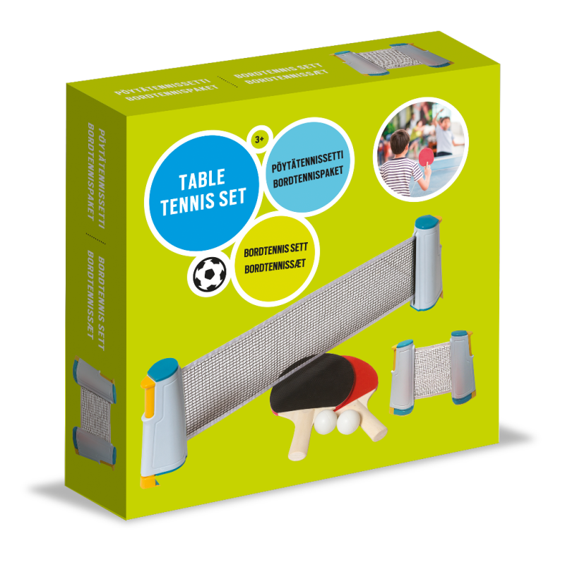 Med dette bordtennissæt er det nemt at stable en lille bordtennisturnering på benene. Nettet er nemt at fastgøre til bordkanten, og så kan det trækkes ud og tilpasses næsten et hvilket som helst bord.Fra 3 år. Sættet inkluderer: - net, der kan trækkes ud - 2 ketsjere - 2 bolde