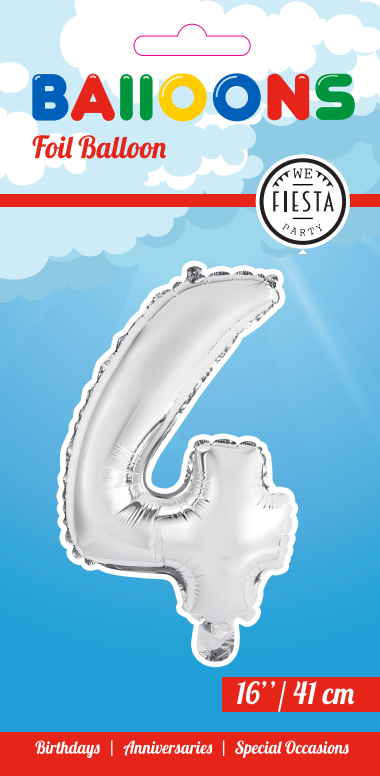 Folieballon formet som et 4 tal, måler 41 cm når det er pustet op med luft. Kan ikke bruge helium men kun luft, der følger sugerør med til at puste ballonen op.