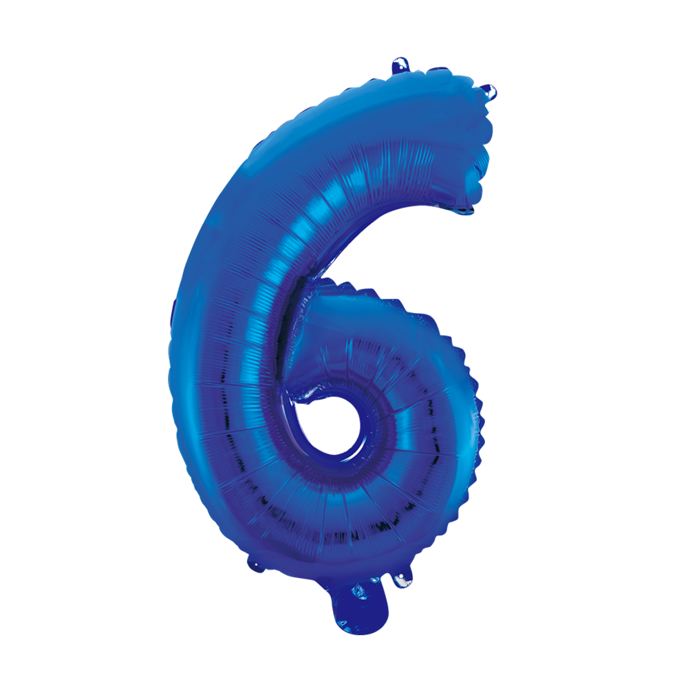Folieballon formet som et 6 tal, måler 41 cm når det er pustet op med luft. Kan ikke bruge helium men kun luft, der følger sugerør med til at puste ballonen op.