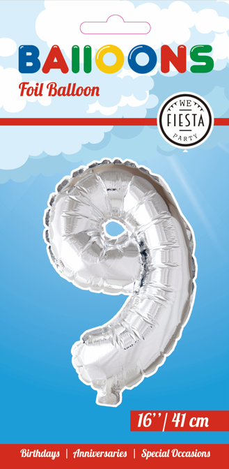 Folieballon formet som et 9 tal, måler 41 cm når det er pustet op med luft. Kan ikke bruge helium men kun luft, der følger sugerør med til at puste ballonen op.